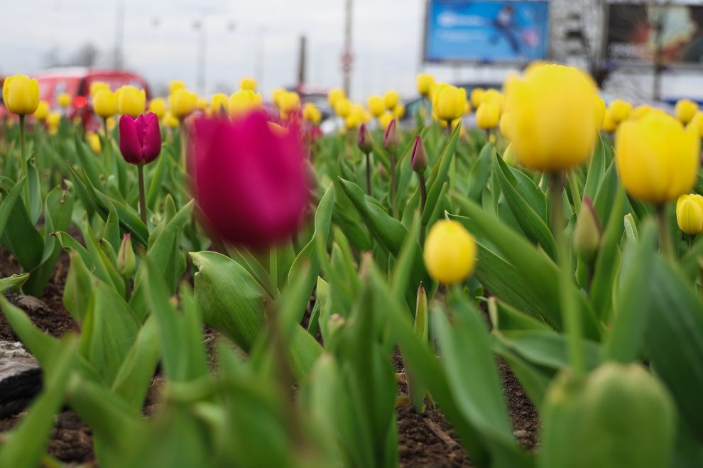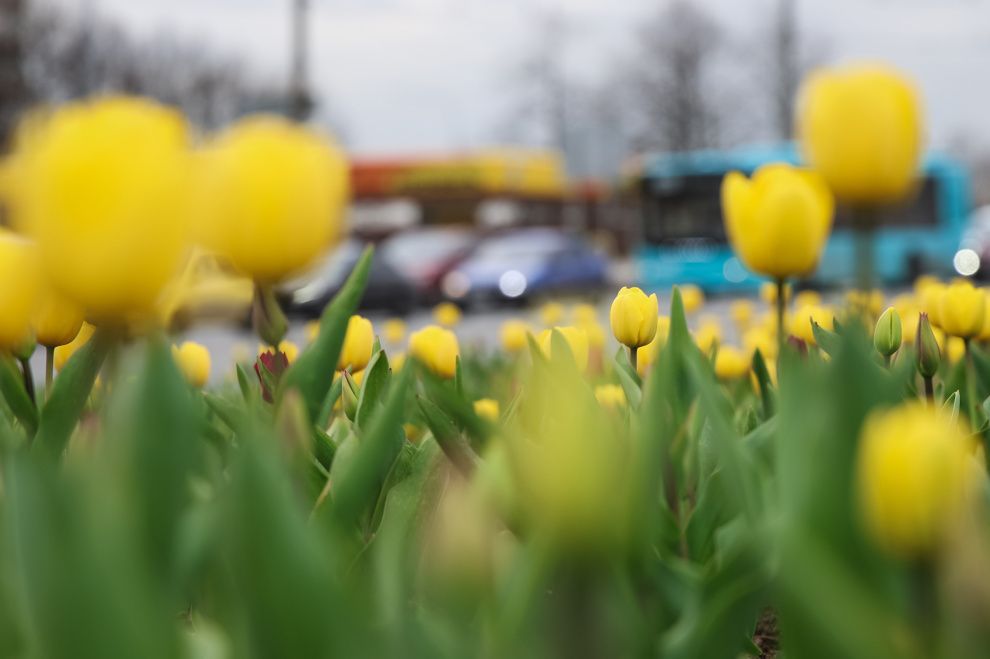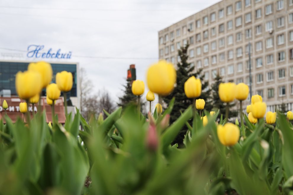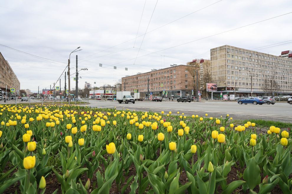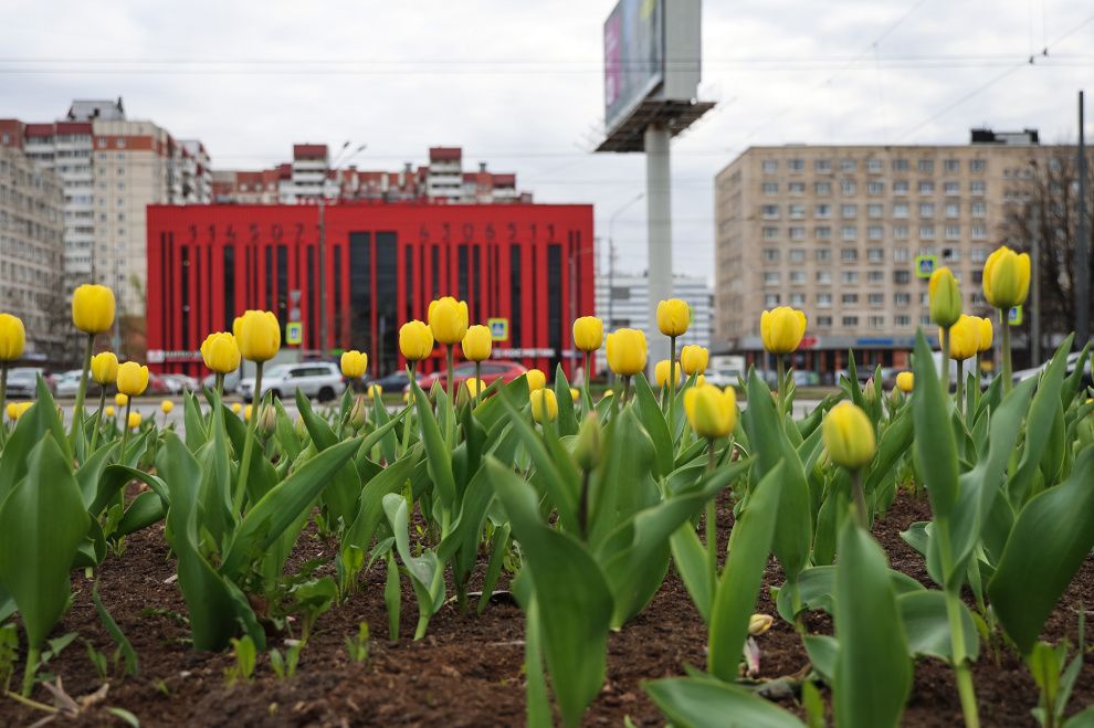 Тюльпаны на улицах Петербурга зацвели раньше обычного срока