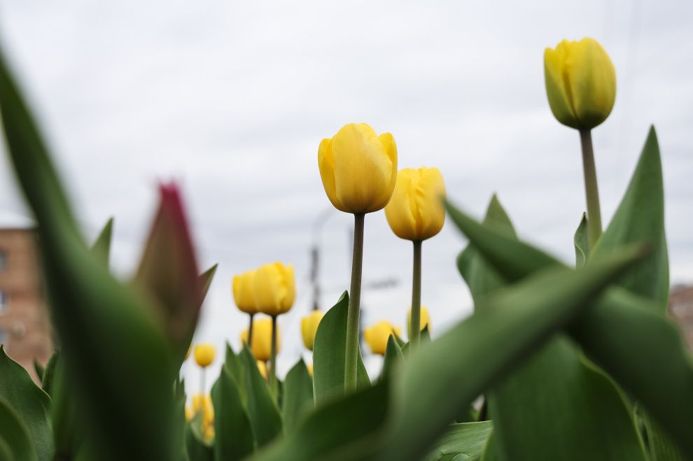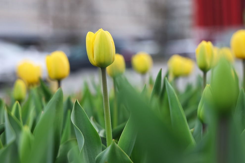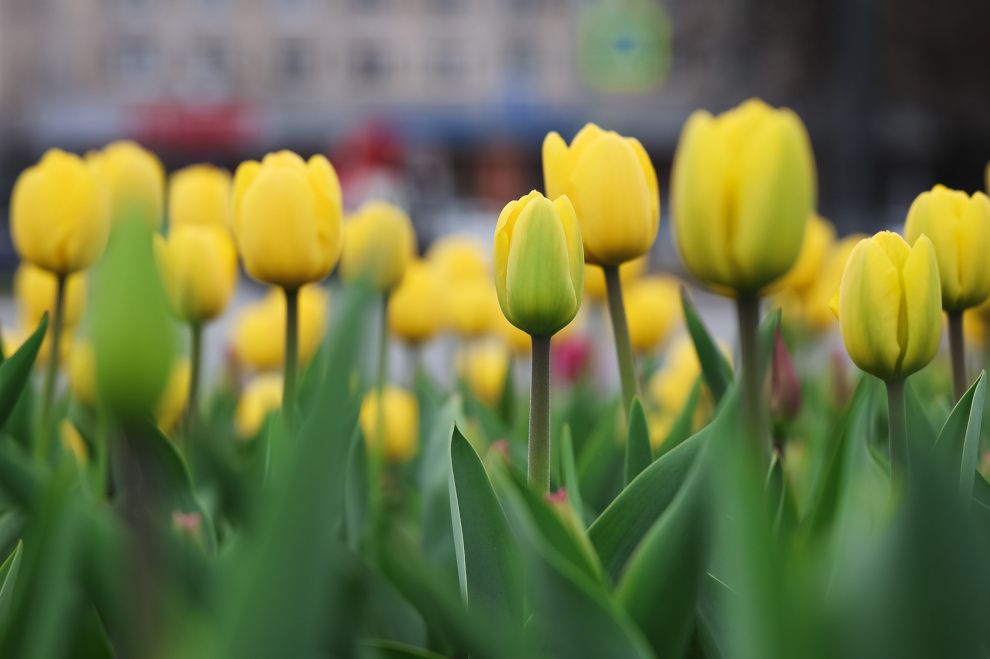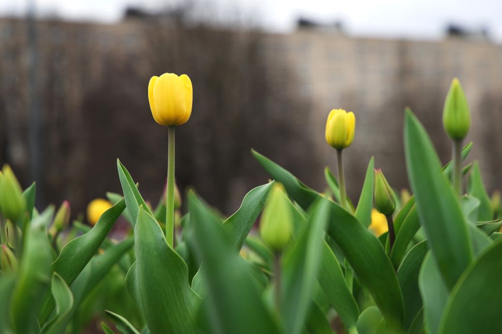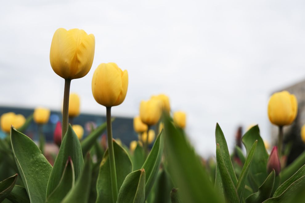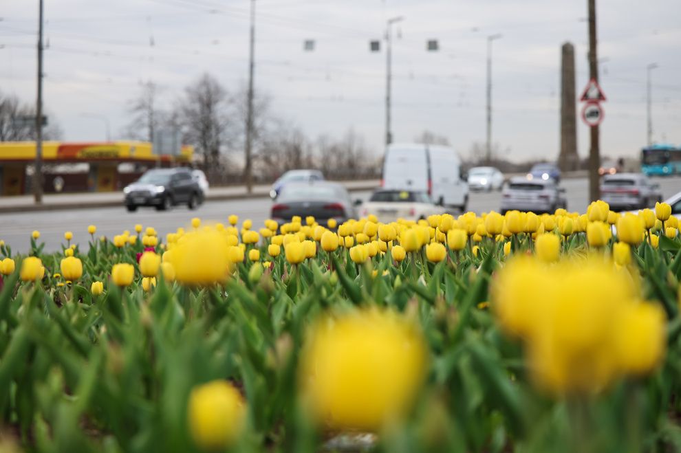 Тюльпаны на улицах Петербурга зацвели раньше обычного срока